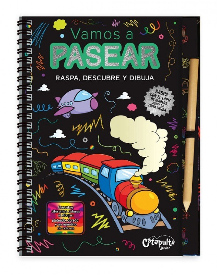 Sinopsis:Usa la pluma de madera para raspar la cubierta negra de las hojas mientras dibujas, y descubre el remolino de colores que hay debajo. Son más de 60 páginas llenas de actividades. El libro incluye un marco de fotos para decorar, un cartel para la puerta y más.